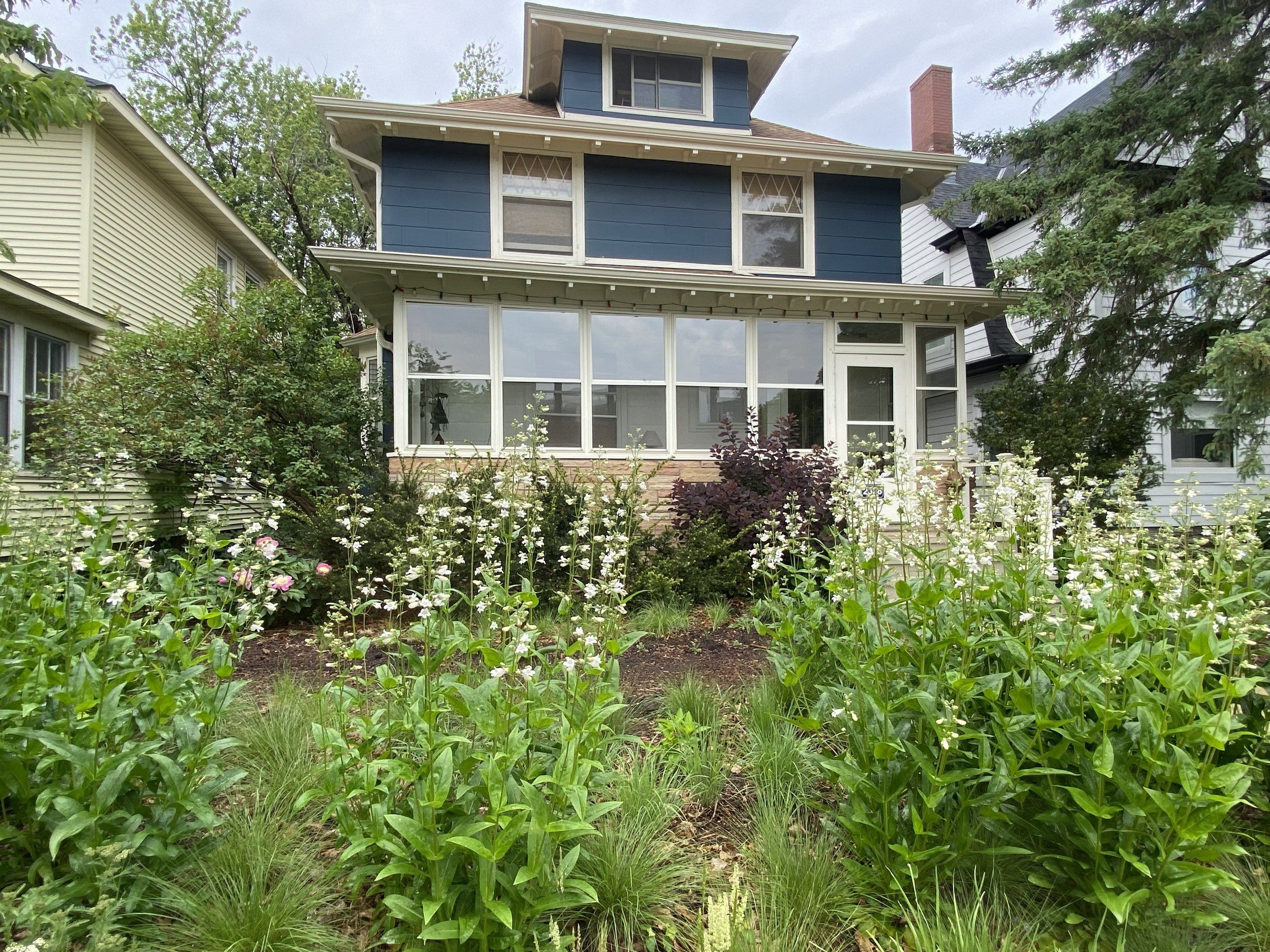 Our work is part of a larger movement that seeks to make the conventional lawn unconventional. We imagine a future where an expansive lawn is no longer the default for every home landscape. We had the joy to work on a project for a homeowner who shares this same vision. They had us remove their entire front lawn, replacing it with a pocket prairie. The lawn suffered from hot and dry conditions and white grubs which specifically like to feed on the roots of conventional turf grass. Now they have a pocket prairie filled with a diverse group of native plant species adapted to these specific site conditions.